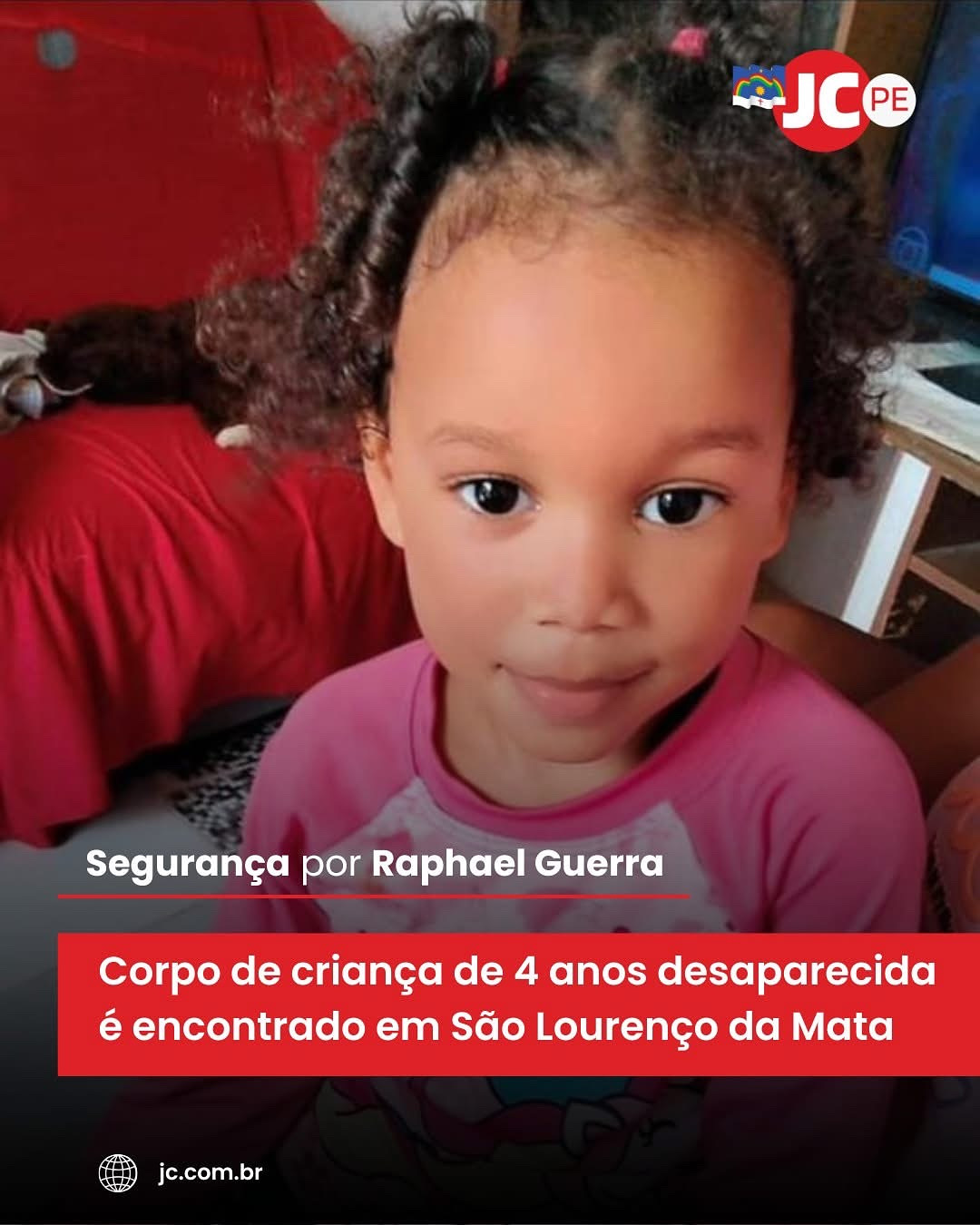 Corpo de criança de quatro anos desaparecida e encontrada morta em São Lourenço da mata